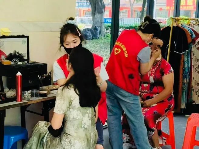 活动现场,妇女们其乐融融!有的在琳琅满目的衣架前,挑选自己喜欢的服饰;有的坐在化妆台前,让化妆师打造精美妆容;有的在摄影师的指导下,摆出优美的姿势。